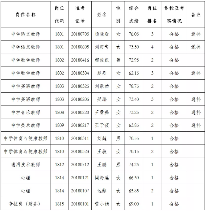根据天津市华英中学2020年公开招聘编外人员公告要求,经过笔试、面试、体检、考察、递补等程序,现对拟聘用人员进行公示,接受社会监督,名单如下: