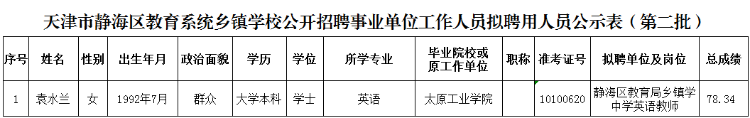 附件:天津市静海区教育系统乡镇学校公开招聘事业单位工作人员拟聘用人员公示表(第二批)