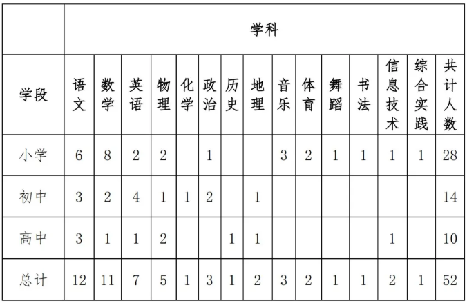 5、体育学科要求武术、跆拳道等相关专业;音乐学科要求声乐、戏剧编导方向。
