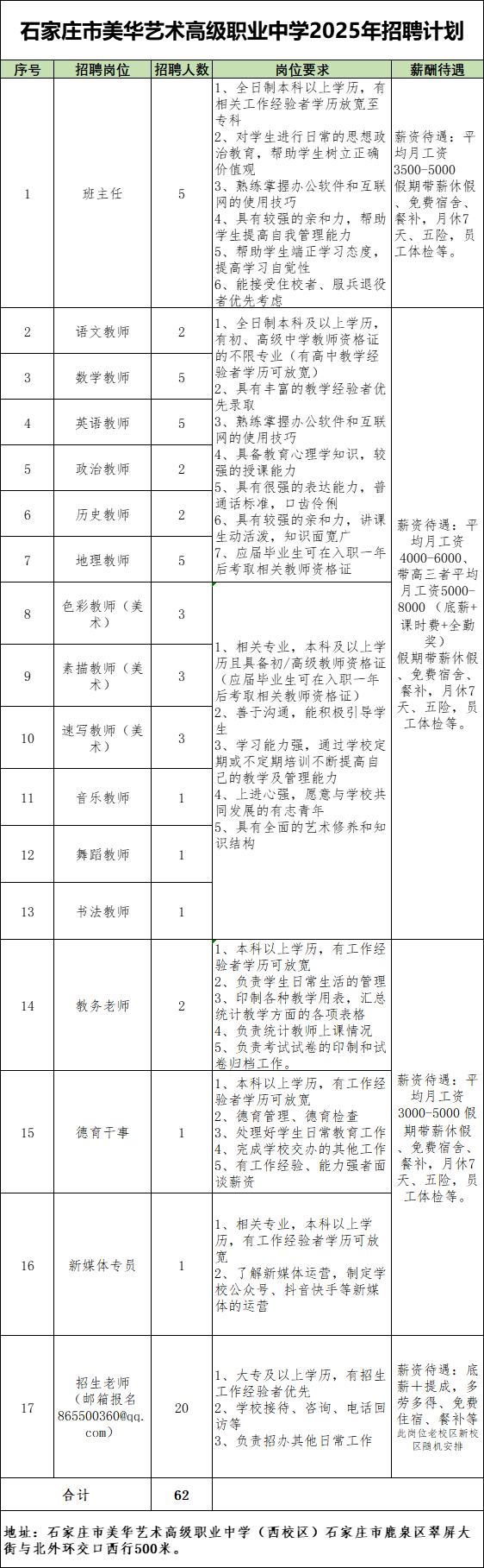石家庄市美华艺术高级职业中学2025年公开招聘教师及工作人员公告
