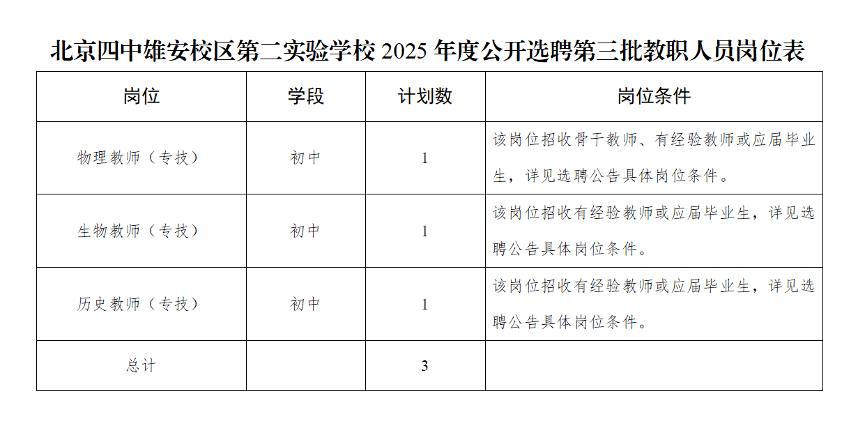 附件:1.北京四中雄安校区第二实验学校2025年度公开选聘第三批教职人员岗位表