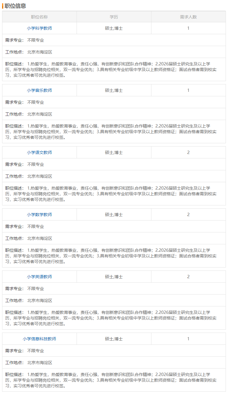 学校创办于1954年,为海淀区公办小学,前身是铁道兵子弟小学,地处北京市海淀区,于2022年7月正式纳入北京十一学校教育集团。学校以“创造适合每一位学生发展的教育”为己任,积极构建以学生成长为导向的课程体系、以学生为中心的治理体系和以办学准则为基础的价值体系。
