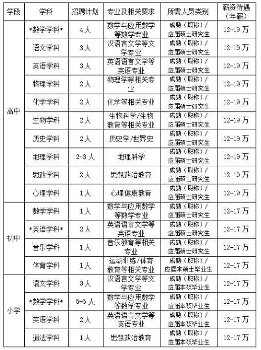 注:*标学科,经过我校综合考评合格后,可优先安排尽快上岗。