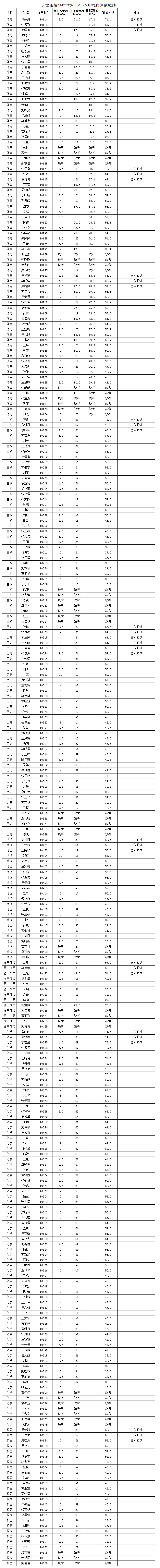 天津市耀华中学2020年公开招聘笔试成绩