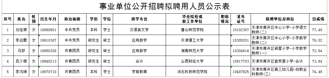 2020年天津市南开区教育系统公开招聘拟聘人员公示(第三批)