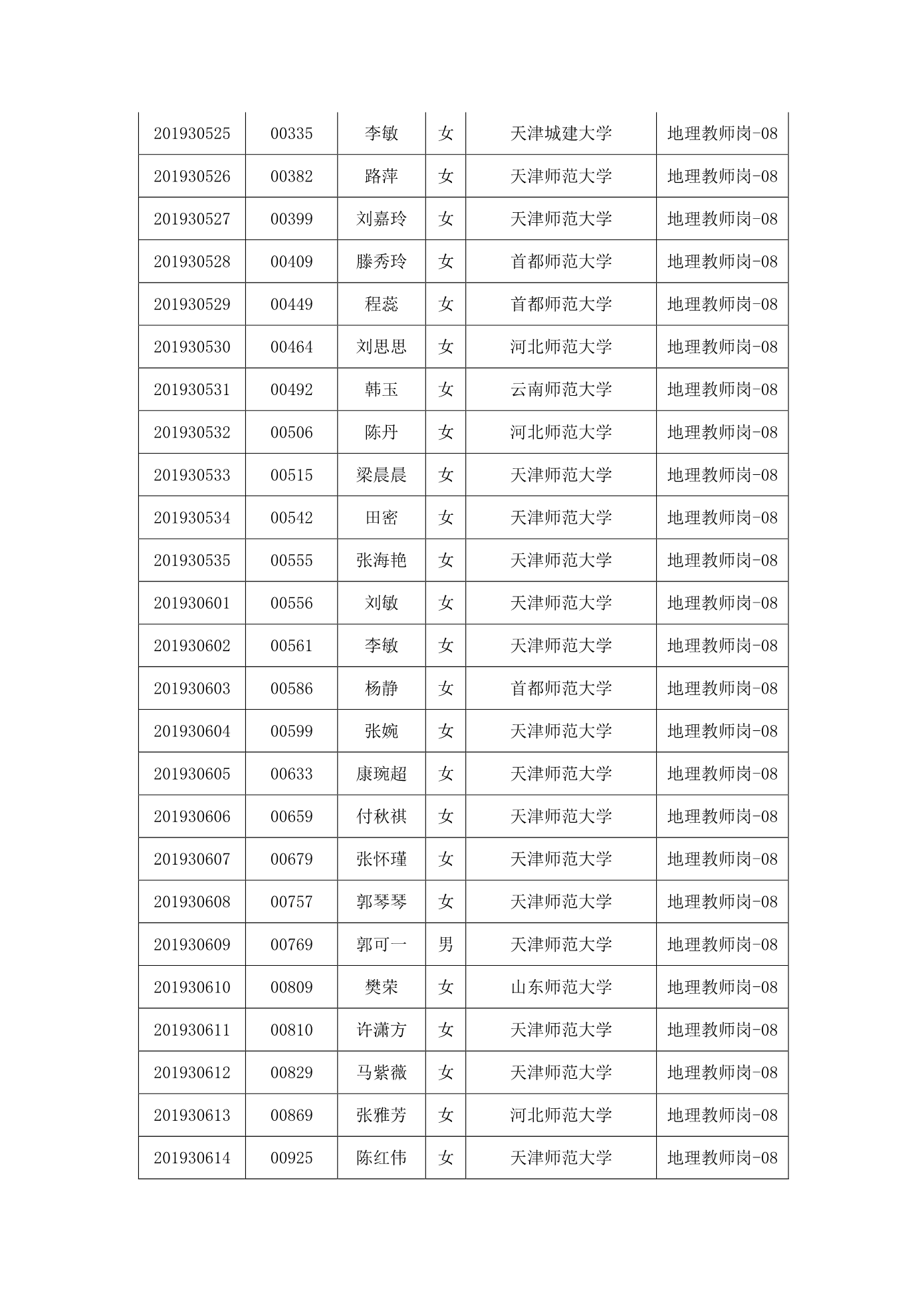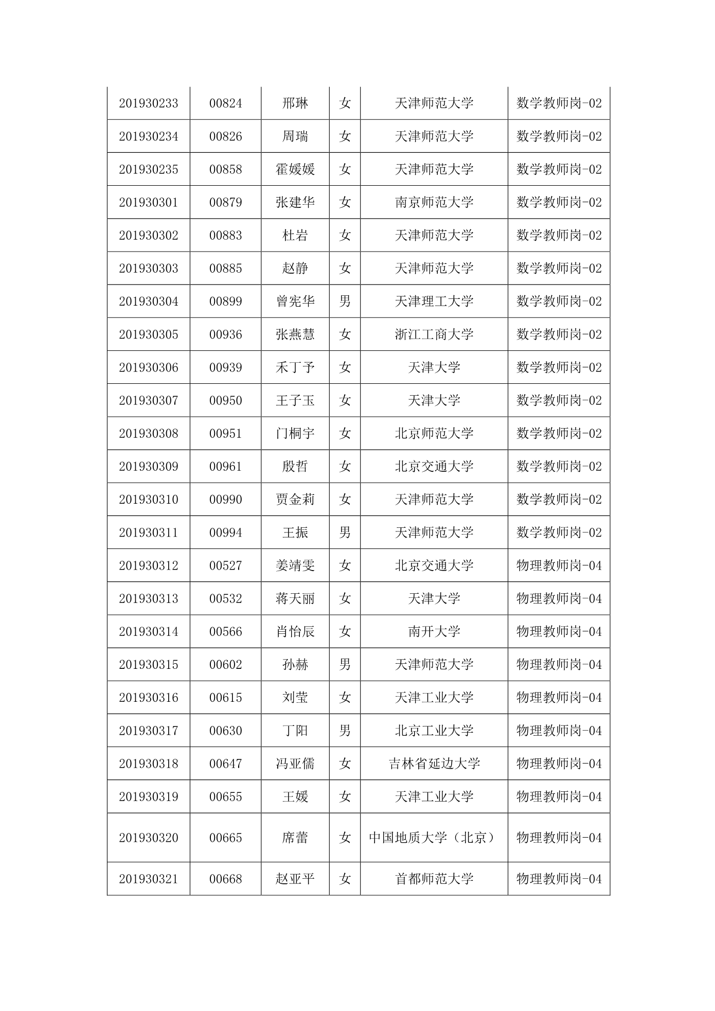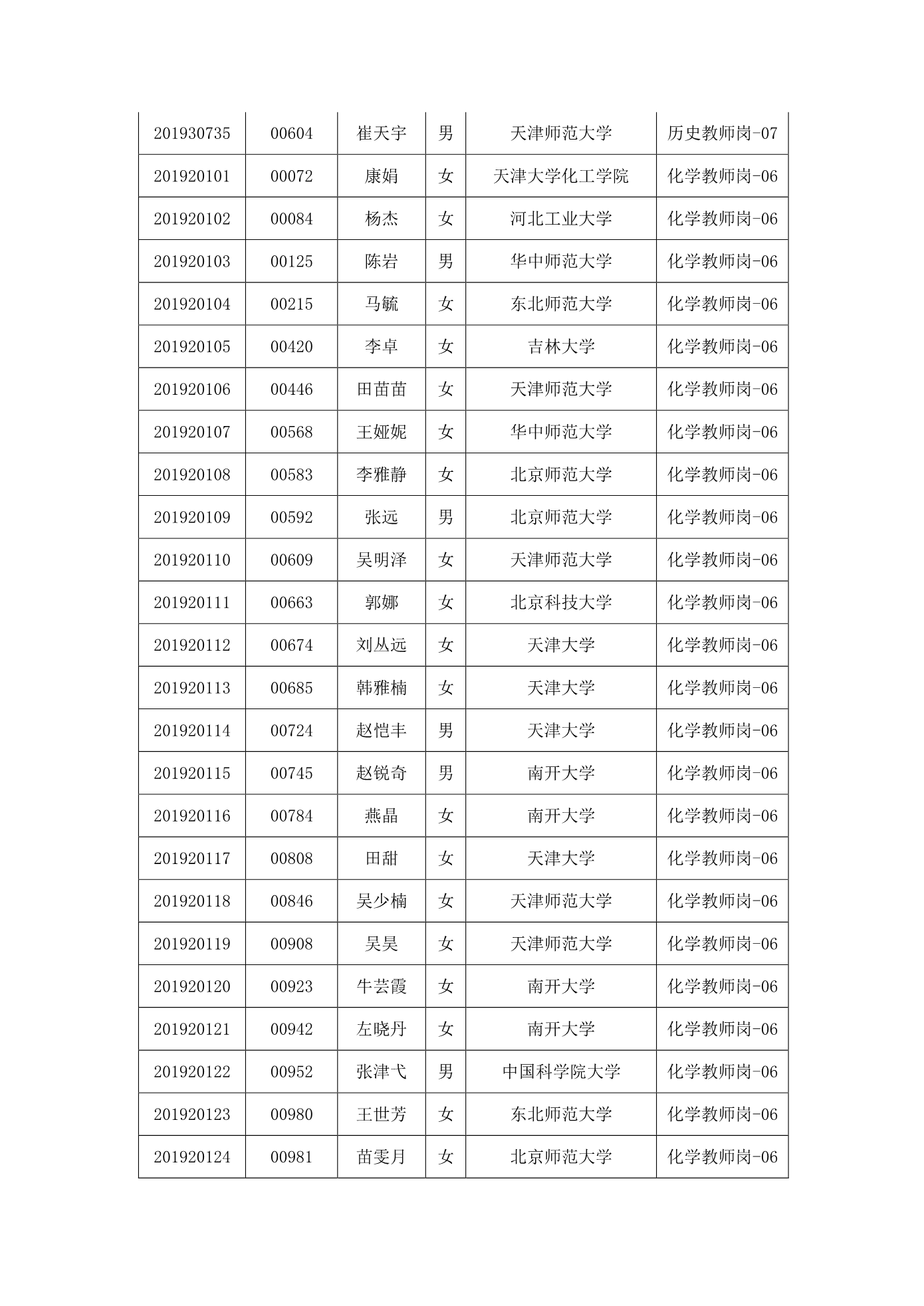 天津市第一中学2020年公开招聘参加笔试人员名单