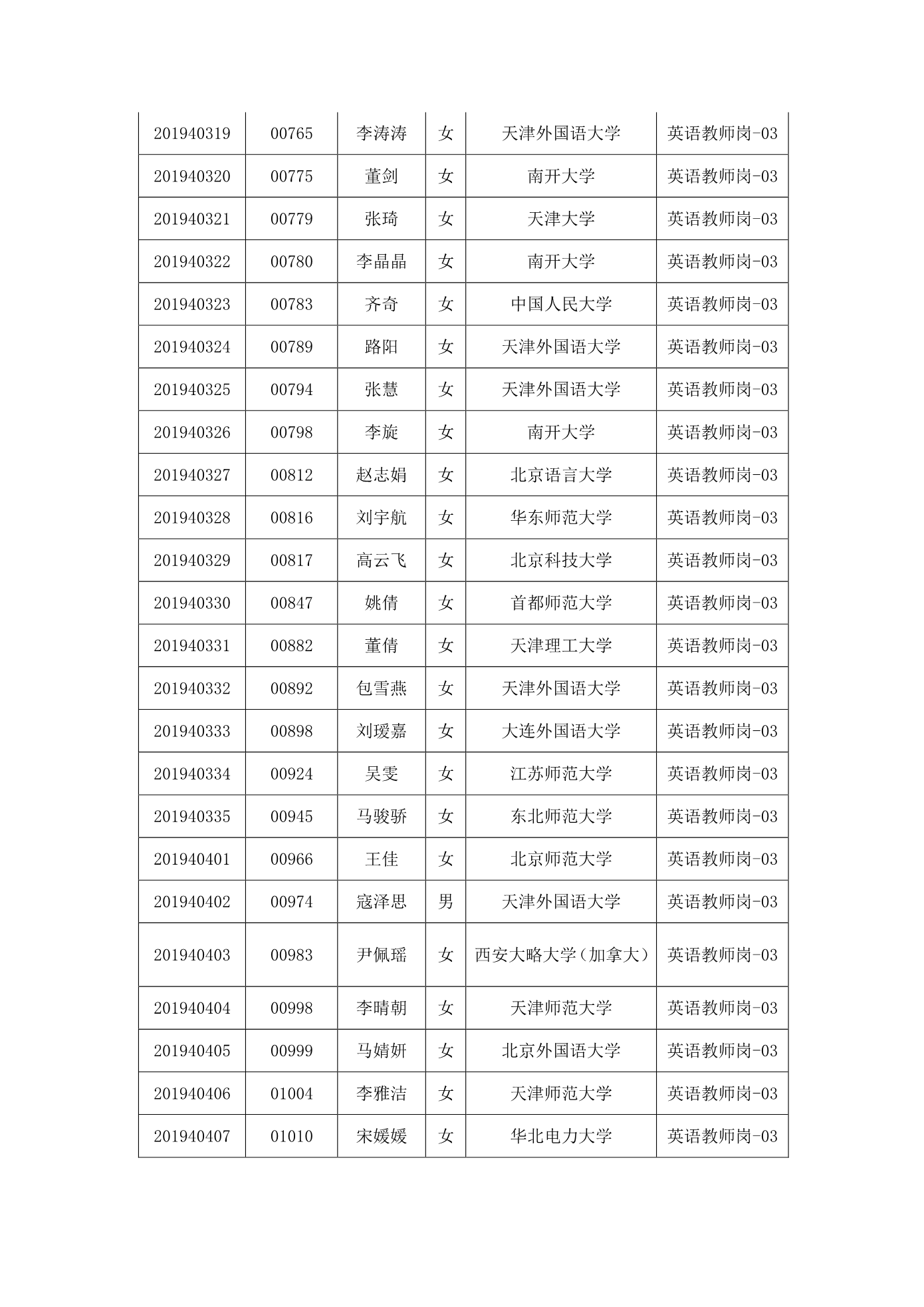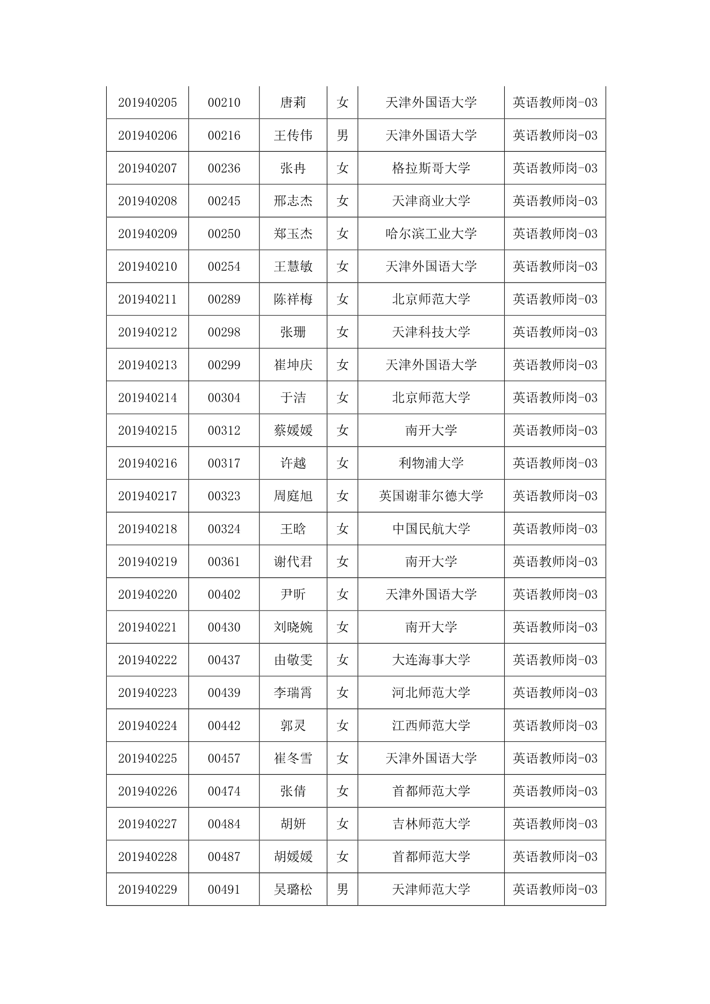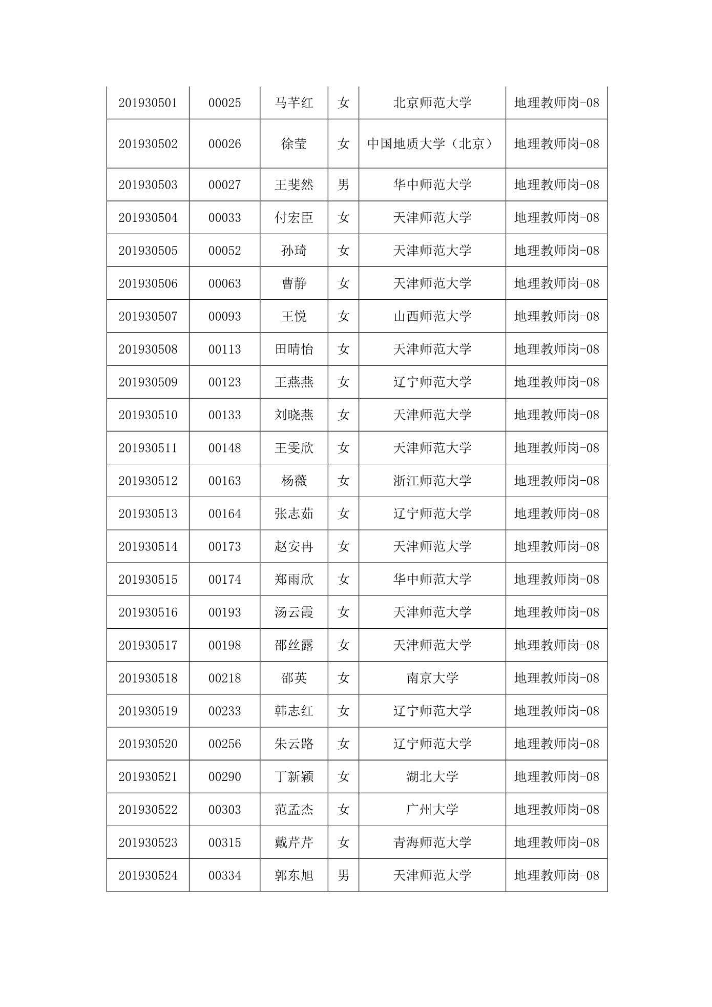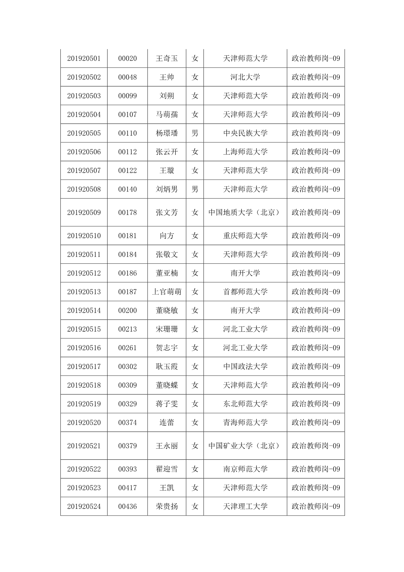 天津市第一中学2020年公开招聘参加笔试人员名单