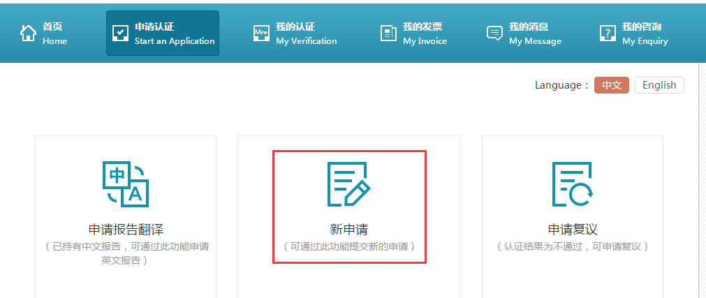 如下图已有的证书报告会自动显示,如果没有的话点击最后的去申请;