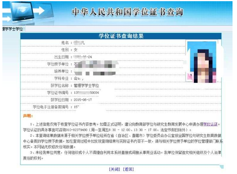 9.学位证书查询结果打印页(与学位认证一样都可以证明自己学位 根据报考单位要求提供)