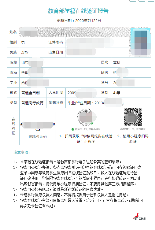10.教育部学籍在线验证报告(与教育部学历证书电子注册备案表一样都可以证明自己学历 根据每个区要求准备)