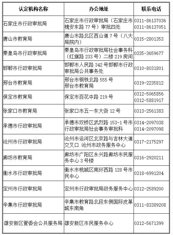 1.申请人网上报名时认定机构须选择户籍、居住证所在地、学校所在地或现役军人、现役武警驻地的市级认定机构(包括定州市、辛集市、雄安新区)申请认定(名单详见附件3)。