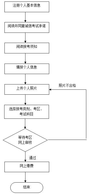 (2)审核未通过的考生请用注册号登录网报系统,在重新上传照片或修改个人资料后,还需重新选择报考类别、考区、考试科目,正确提交信息后才能处于等待审核状态。否则,将被视为放弃报名。