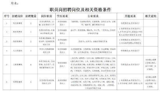 为满足河北水利建设管理有限公司(以下简称“水建公司”)用人需求,现公开招聘工作人员20名。有关事宜公告如下: