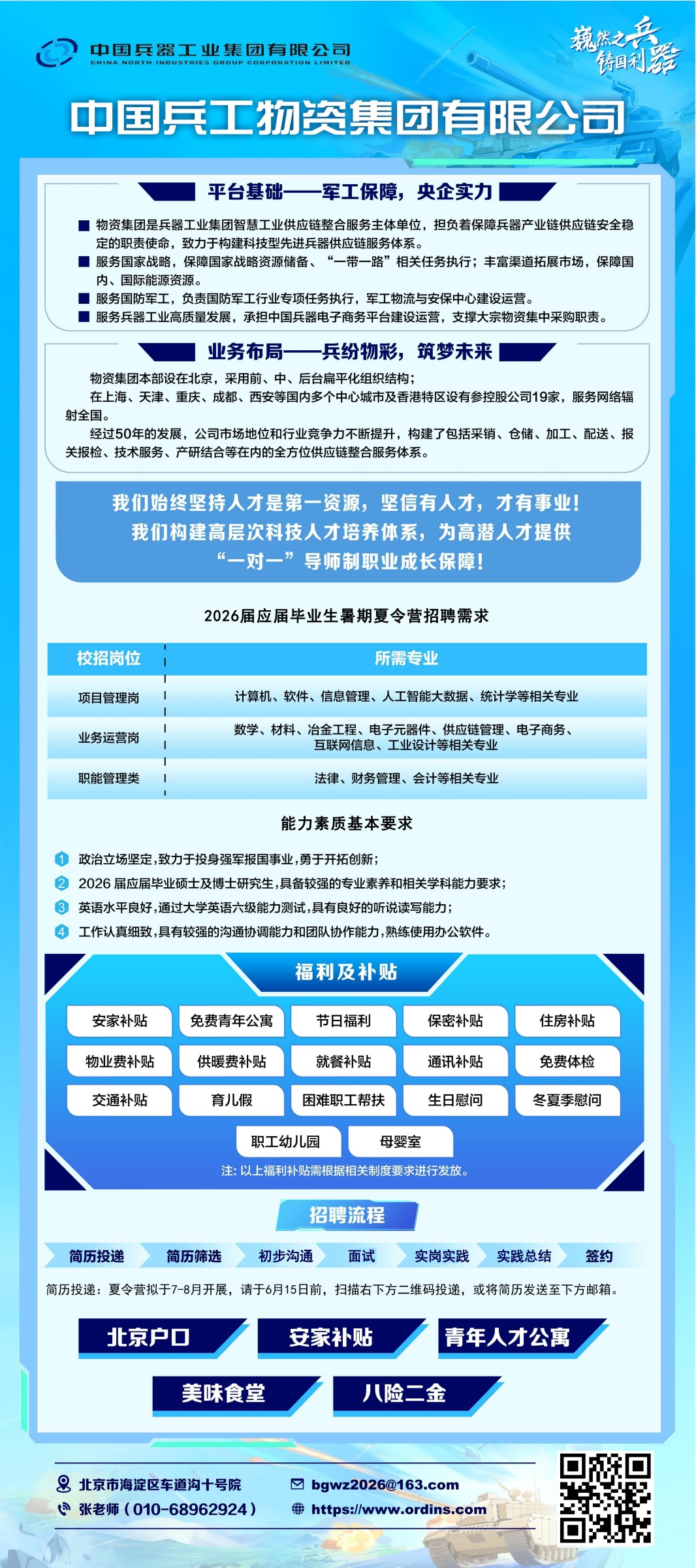 中国兵工物资集团有限公司2026届应届毕业生招聘