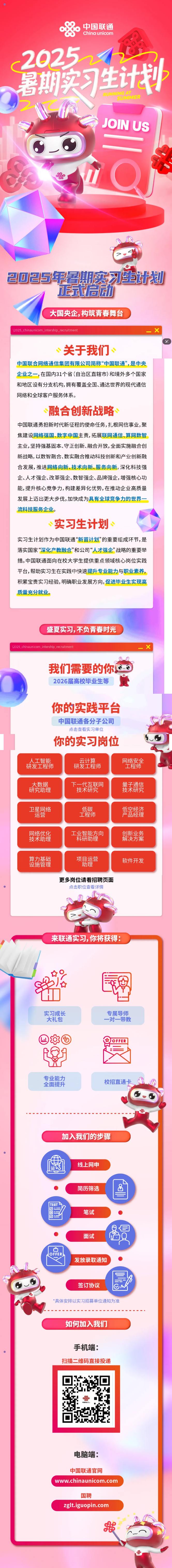 中国联通2025暑期实习生计划正式启动