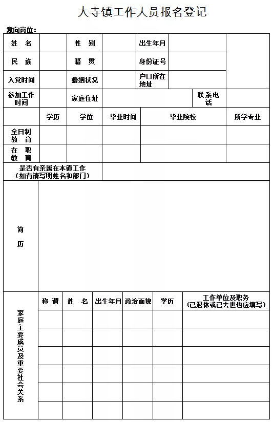 报名方式:通过电子邮件报名,填报《天津市西青区大寺镇工作人员报名登记表》(附件)发送至电子邮箱:bfrlxq@163.com