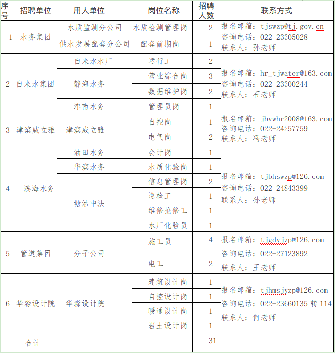 本次招聘共计31人,招聘岗位、人数及联系方式如下: