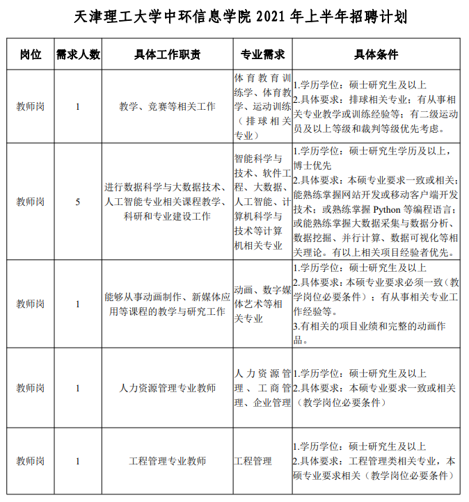 附件:天津理工大学中环信息学院 2021 年上半年招聘计划