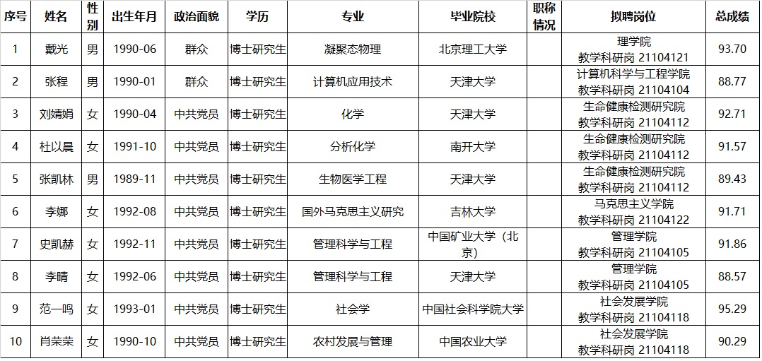 - 天津农学院2023年公开招聘硕士管理岗位拟聘用人员公示