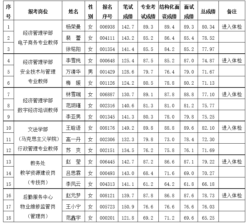 2、总成绩按笔试成绩(百分制,保留1位小数)和面试成绩各占50%的比例合成,保留2位小数。