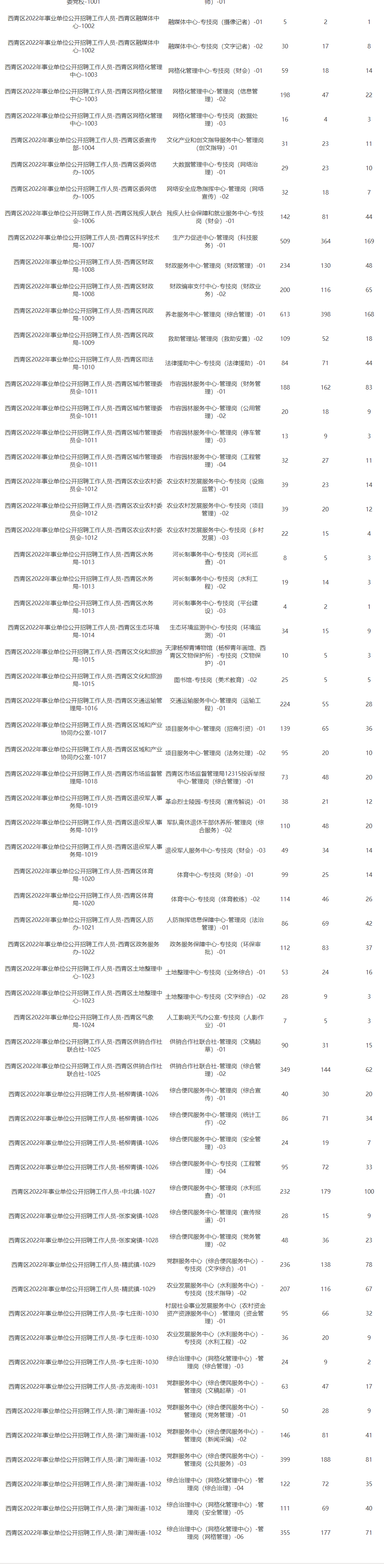 西青区2022年事业单位公开招聘工作人员报考情况统计(统计时间:2022年5月7日上午10点)
