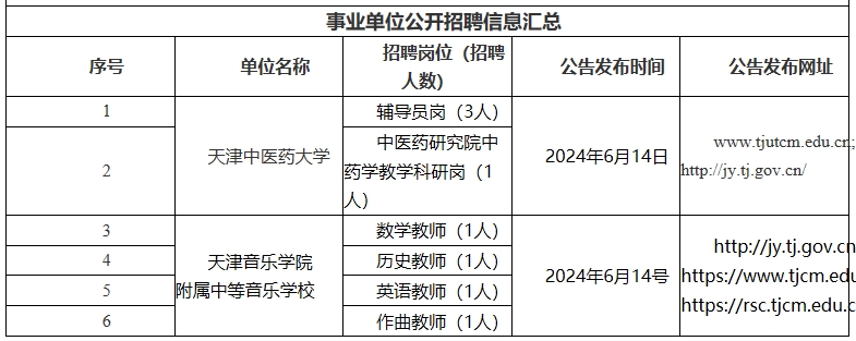天津市部分事业单位公开招聘信息6.14