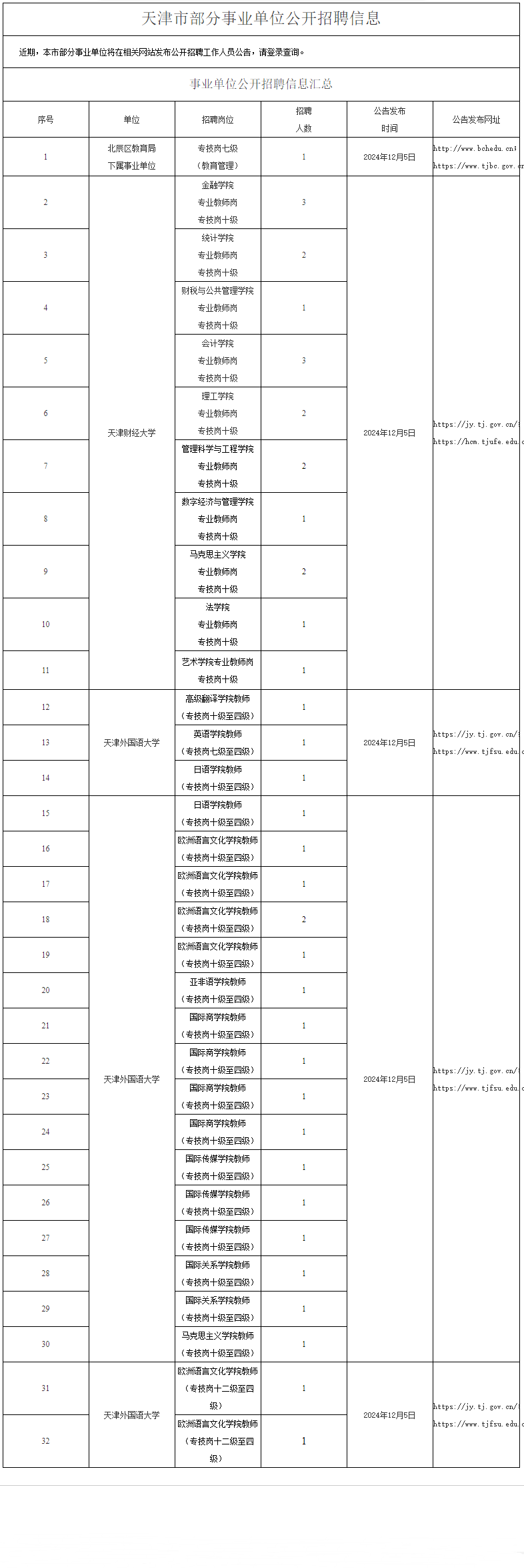 天津市部分事业单位公开招聘信息12.5