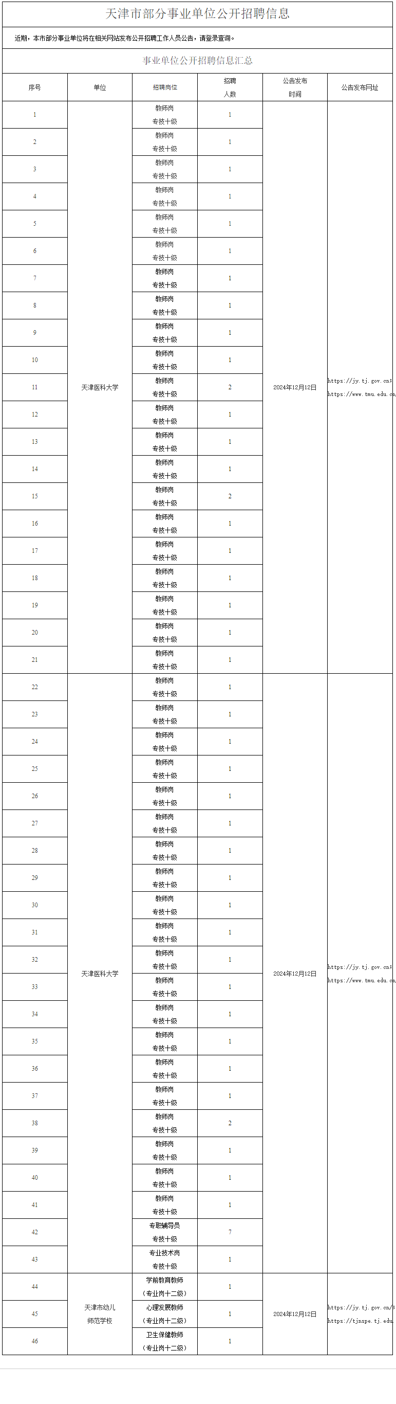 天津市部分事业单位公开招聘信息12.12