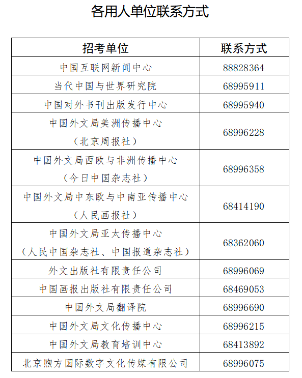 此次招聘涉及67个岗位、计划招聘75人,具体岗位及资格条件详见《中国外文出版发行事业局所属企事业单位2022年度公开招聘岗位信息表》。其中,有关岗位专业条件参考教育部公布的专业目录(《普通高等学校本科专业目录》和《授予博士、硕士学位和培养研究生的学科、专业目录》)。报名应聘人员在报名时对专业有任何疑问的,可以直接拨打各用人单位电话进行咨询了解。