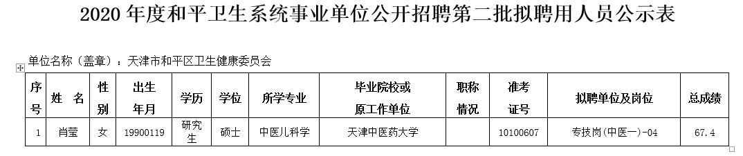 附件:2020年和平卫生系统事业单位公开招聘第二批拟聘用人员公示表