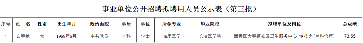 西青区2020年公开招聘卫生健康系统工作人员公示公告(第三批)