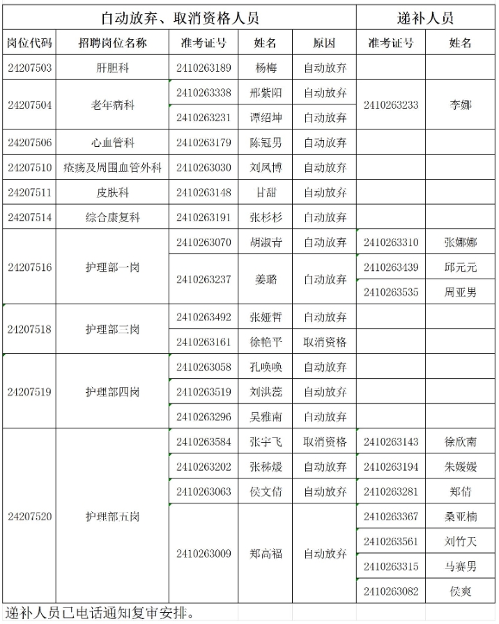 天津中医药大学第一附属医院2024年第五批公开招聘资格复审后递补人员情况