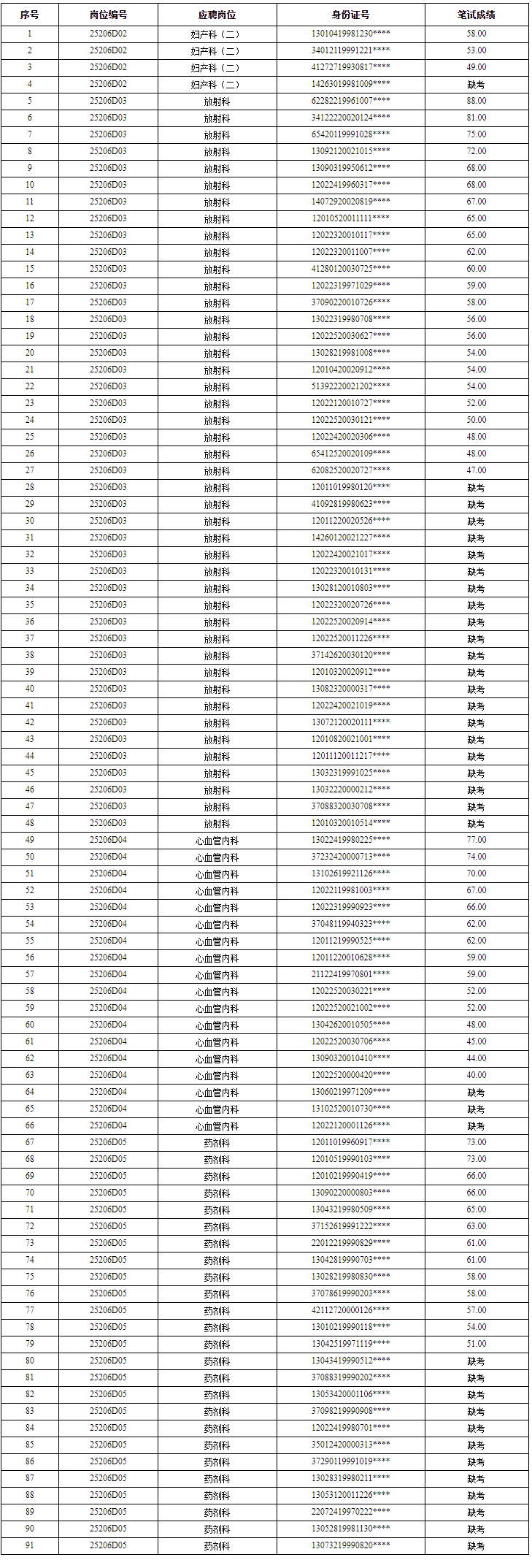 天津医科大学朱宪彝纪念医院2025年人事代理制招聘笔试成绩