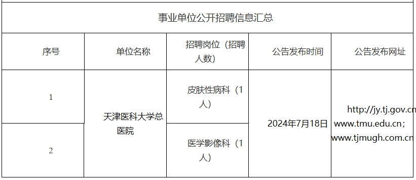 天津市部分事业单位公开招聘信息7.18