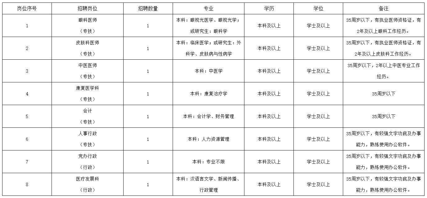 (一)具有中华人民共和国国籍,拥护中国共产党的领导,遵守国家法律、法规,具有较强的事业心和吃苦耐劳精神,服从组织安排,愿意履行医师及行政人员的义务。