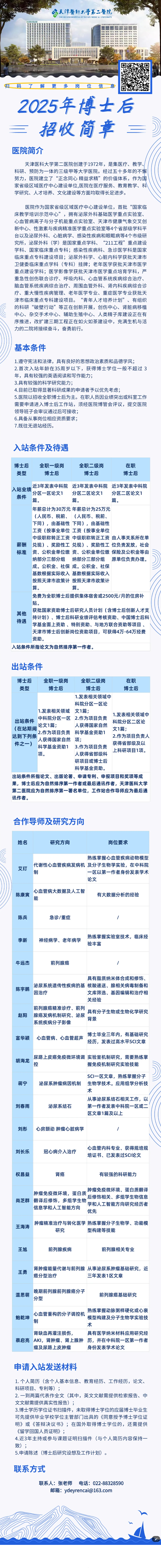 天津医科大学第二医院2025年博士后招收简章