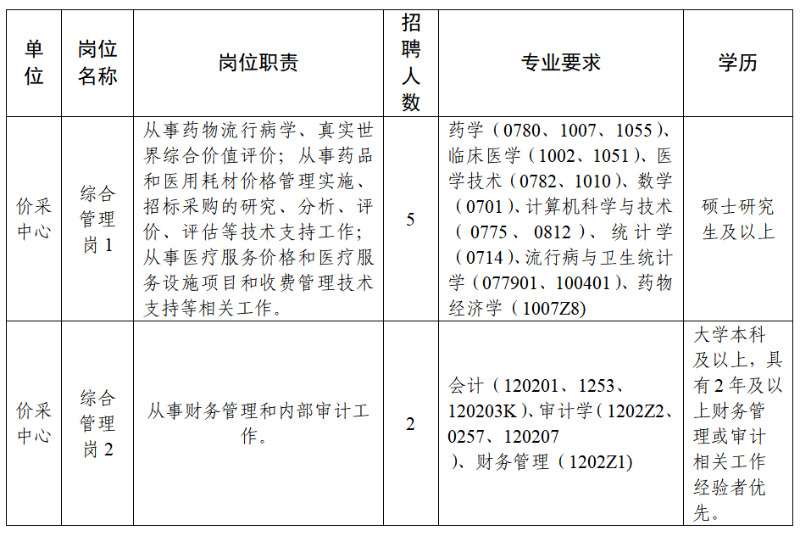 国家医疗保障局医药价格和招标采购指导中心2025年度第二批公开招聘合同制人员公告