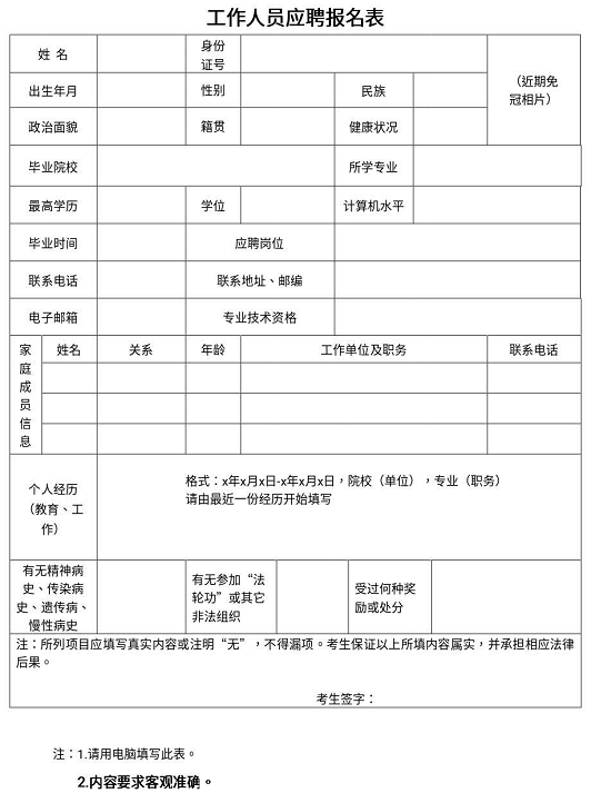 候选人需下载附件一:《工作人员应聘报名表》