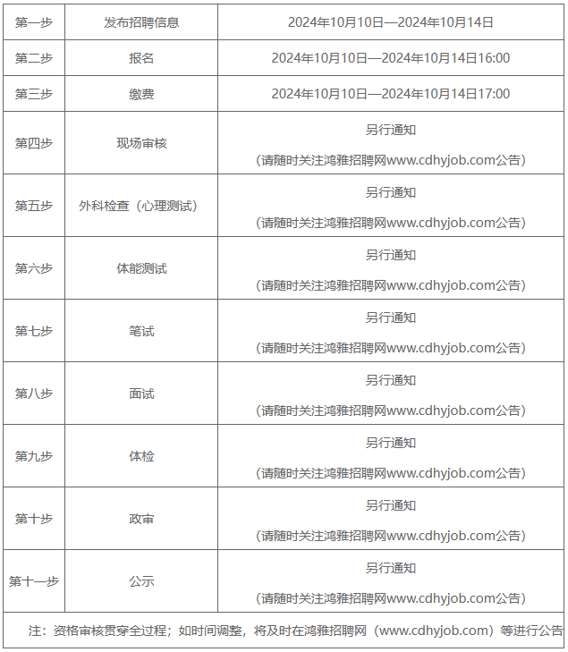 在招聘过程中,本公告涉及的内容、时间等如有变更,请考生随时登录鸿雅招聘网(www.cdhyjob.com)查看相关信息。