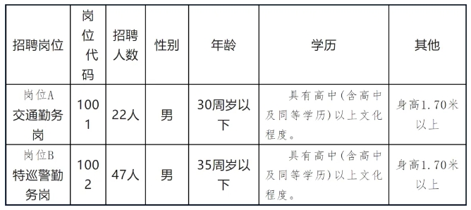 6.具有较强的服务和吃苦耐劳精神,自愿从事公安警务辅助工作,服从组织安排。