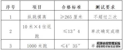体能测评项目及标准: