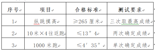 在规定集合时间内未进场点录人员记为缺考,不得参加资格复审与体能测试;弄虚作假者,一经发现,取消考试资格。体能测试采取单项淘汰方式进行,凡一项不达标的视为体能测试不合格。体能测试成绩将于测试当日进行公布,并由考生签字确认。