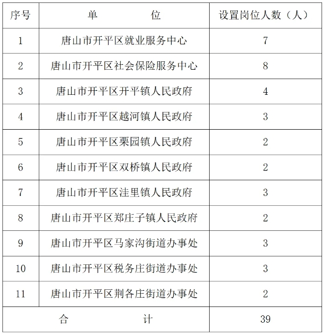唐山市开平区2024届离校未就业高校毕业生临时公益性岗位招聘39人公告