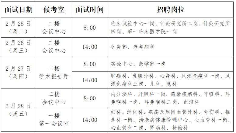 天津中医药大学第一附属医院2025年第一批公开招聘面试安排