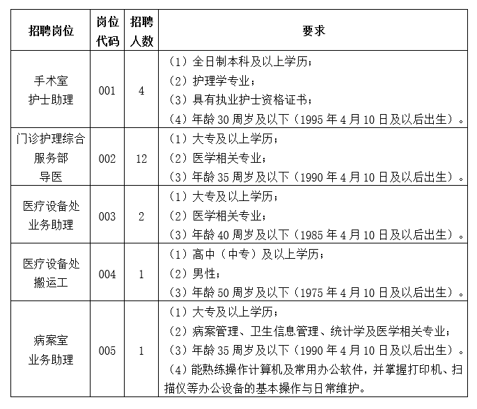 (5)手术室护士助理岗位需提供执业护士资格证书。