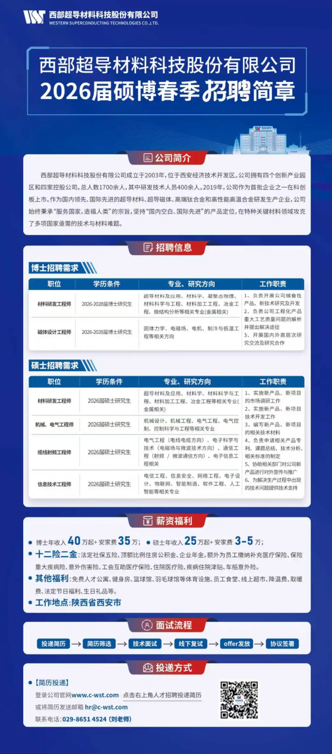 西部超导材料科技股份有限公司2026届硕博春季招聘