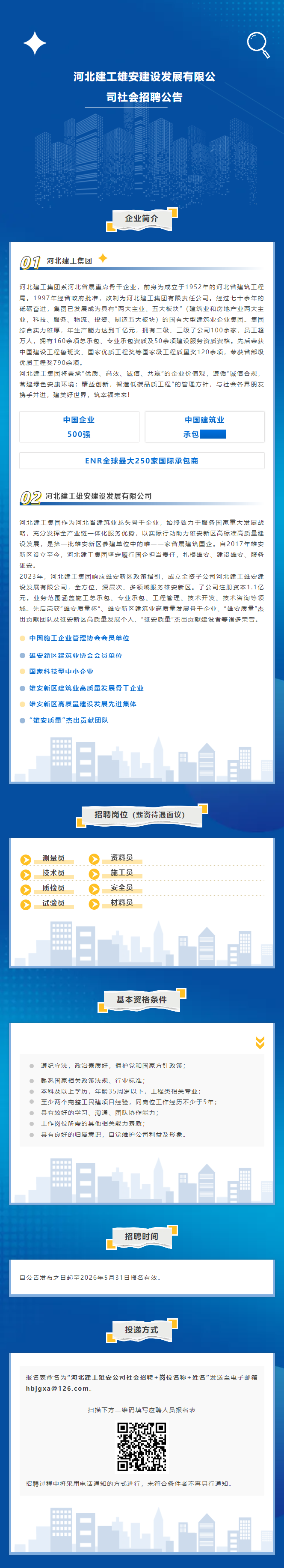 河北建工雄安建设发展有限公司社会招聘公告 时间:2026-04-22 16:33 作者:吴老师 半月讲坛温馨提示:信息均转载自官方网站,仅供参考,不构成相关服务。其最终解释权归相关单位所有,如对信息有疑问,请直接与相关单位联系。转载目的在于信息传递,我司不承担此类稿件其他行为的连带责任,如有侵权或需删除请联系我们。因此带来的不便敬请谅解! (责任编辑:吴老师) 上一篇:2026年投管公司所属企业面向社会公开选聘部分岗位工作人员的公告 下一篇:河北唐山齿轮集团有限公司招聘