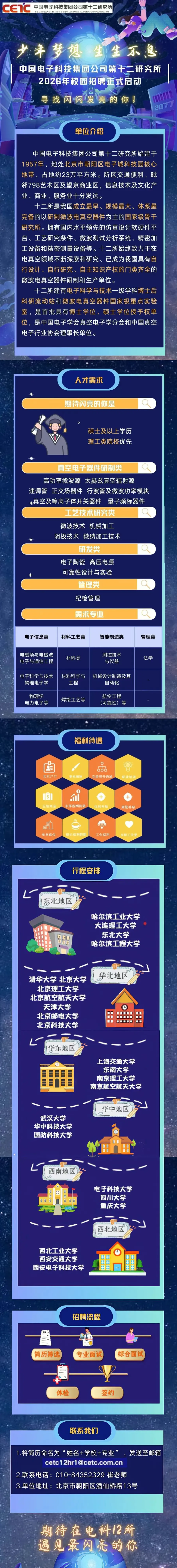 中国电子科技集团公司第十二研究所2026届校园招聘 时间:2026-04-29 16:07 作者:吴老师 半月讲坛温馨提示:信息均转载自官方网站,仅供参考,不构成相关服务。其最终解释权归相关单位所有,如对信息有疑问,请直接与相关单位联系。转载目的在于信息传递,我司不承担此类稿件其他行为的连带责任,如有侵权或需删除请联系我们。因此带来的不便敬请谅解! (责任编辑:吴老师) 上一篇:国金证券2026年暑期实习暨2027届校园招聘 下一篇:昆仑数智科技有限责任公司招聘公告